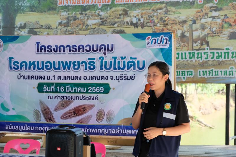 วันจันทร์ ที่ 16 เดือน มีนาคม พ.ศ. 2569 นายสมพาน แซ่จิ๋ว นายกเทศมนตรีตำบลแคนดง มอบหมายให้นางยุวดี เมฆบุษยา รองนายกเทศมนตรีตำบลแคนดง เป็นประธานพิธีเปิดโครงการควบคุมโรคพยาธิใบไม้ตับ บ้านแคนดง ม.1 ต.แคนดง อ.แคนดง จ.บุรีรัมย์ โดยมีคณะผู้บริหาร และประชาชนบ้านแคนดง ม.1 เข้าร่วมโครงการในครั้งนี้ ณ ศาลาอเนกประสงค์ สนับสนุนโดย กองทุนหลักประกันสุขภาพเทศบาลตำบลแคนดง