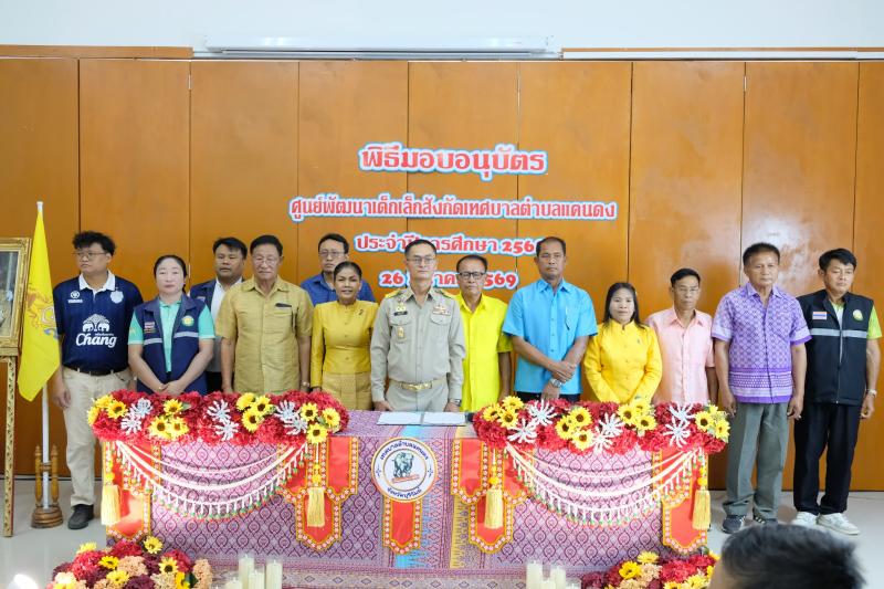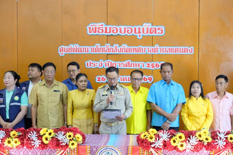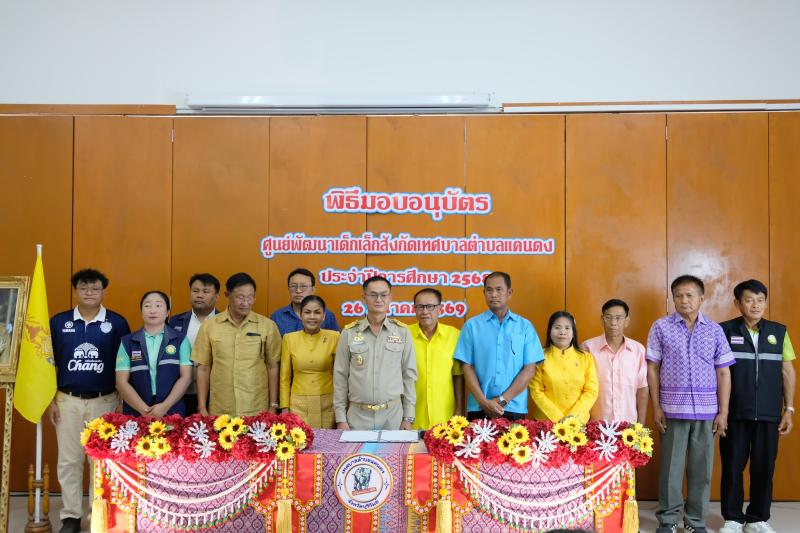 นายสมพาน แซ่จิ๋ว นายกเทศมนตรีตำบลแคนดง เป็นประธานเปิดพิธีมอบอนุบัตรศูนย์พัฒนาเด็กเล็กสังกัดเทศบาลตำบลแคนดง ประจำปีการศึกษา 2568 โดยมีคณะผู้บริหาร สมาชิกสภาเทศบาลตำบลแคนดง ผู้อำนวยการกอง หัวหน้าฝ่าย และผู้ปกครองเข้าร่วมในครั้งนี้ ณ อาคารอเนกประสงค์เทศบาลตำบลแคนดง อำเภอแคนดง จังหวัดบุรีรัมย์